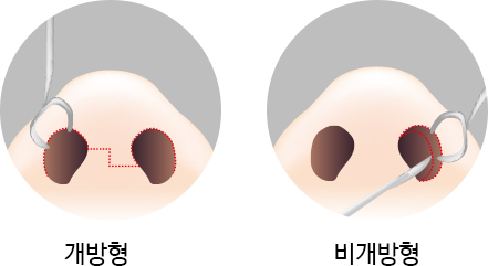 - 비개방형 절개: 콧구멍 안쪽을 절개하는 방식