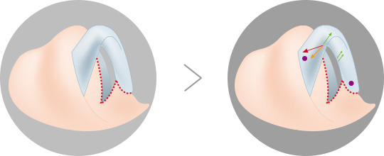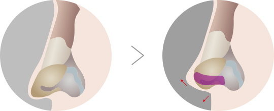 아래로 처져 내려온 날개 연골을 비중격 연골에 고정하여 주면, 날개 연골이 위쪽으로 회전되어 코끝을 높일 수 있습니다.