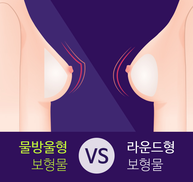 - 라운드형 : 일반적인 가슴보형물로, 바닥이 둥글고 가운데가 봉긋한 라운드 모양입니다.