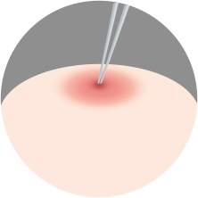 유두 주변을 국소마취 한 후 함몰된 유두를 찾습니다.