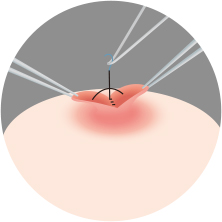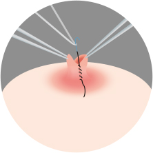 아래조직을 사용하여 유두가 함몰되지 않도록 고정한 후 봉합합니다.
