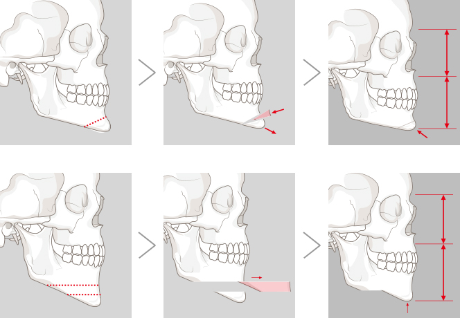 무턱, 사걱턱의 경우 턱끝의 라인을 살려 갸름한 하악을 만들어주는 수술