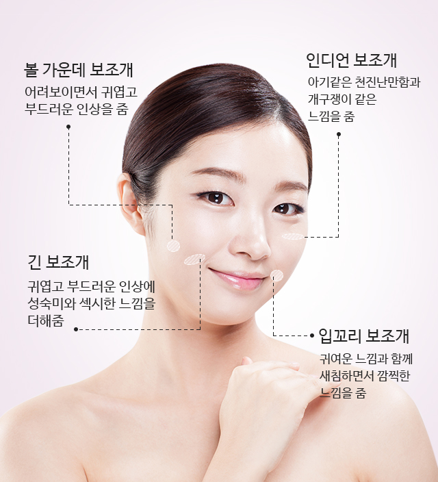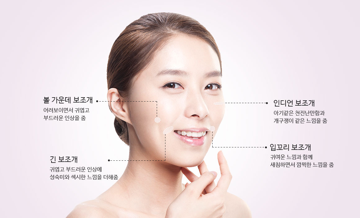 보조개성형은 간단한 국소마취를 통해 입안의 구강점막을 약 2~3㎜ 정도 절개하고 녹는 실을 이용하여 피부 밑의 조직을 묶어 보조개를 만드는 방법으로 자연스러운 보조개를 연출할 수 있습니다.