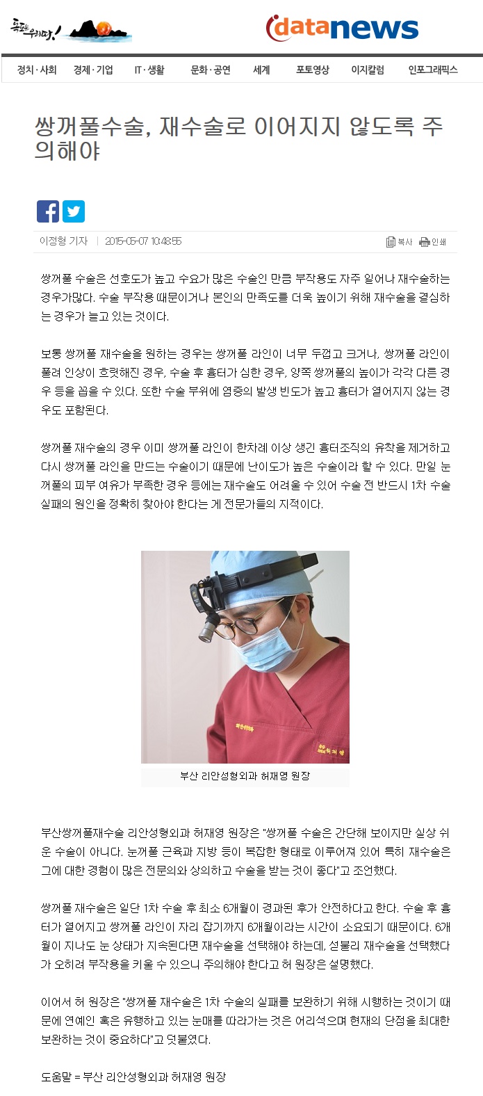 | [언론 속의 리안] 쌍꺼풀수술, 재수술로 이어지지 않도록 주의해야 | |