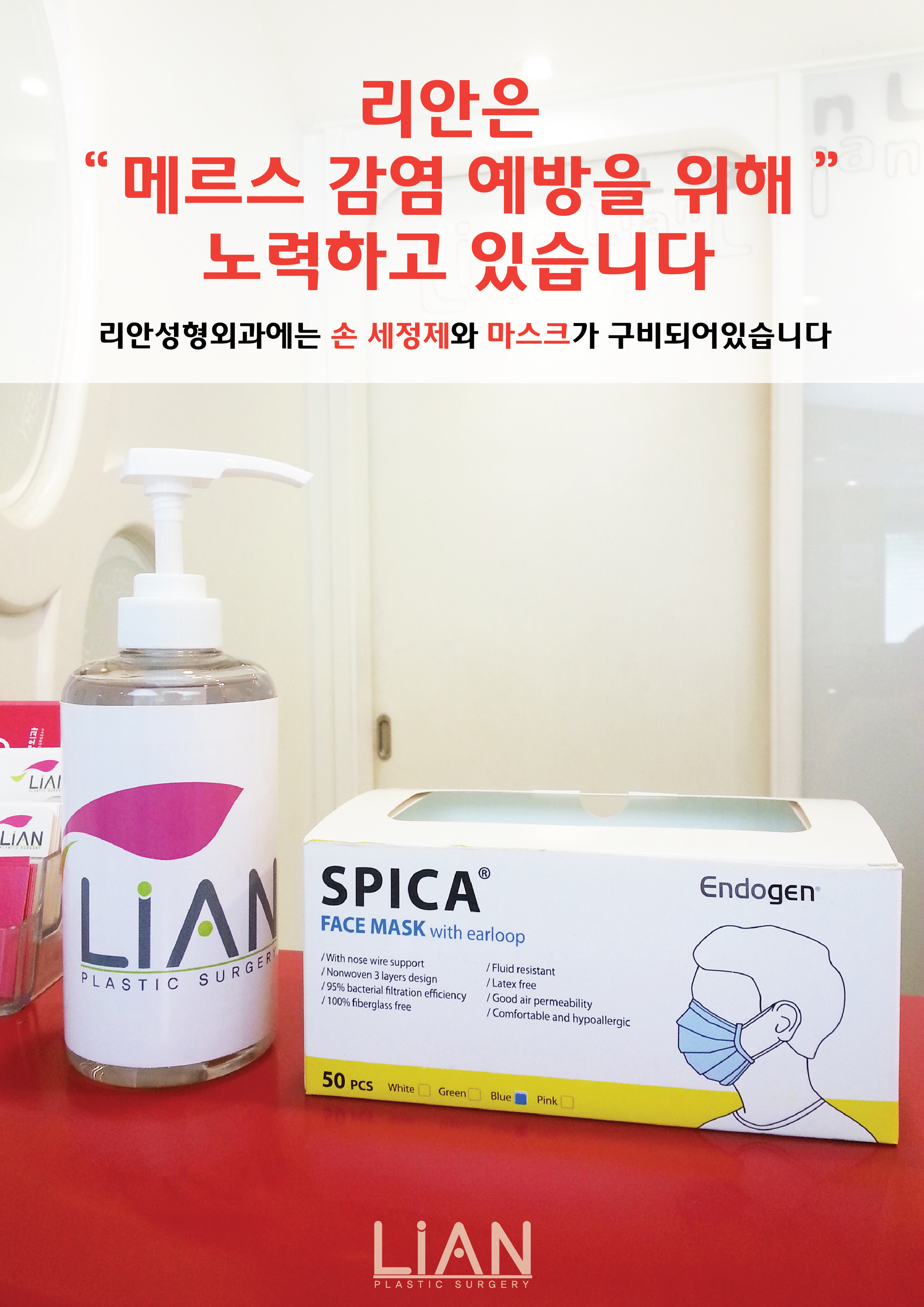 <저희 리안성형외과에는 손 세정제와 마스크가 구비되어 있습니다.>