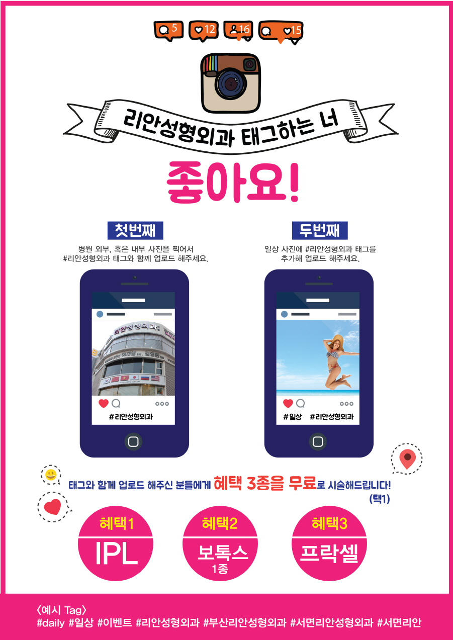 ②일상사진에 #리안성형외과 태그를 추가해 업로드 해주세요.