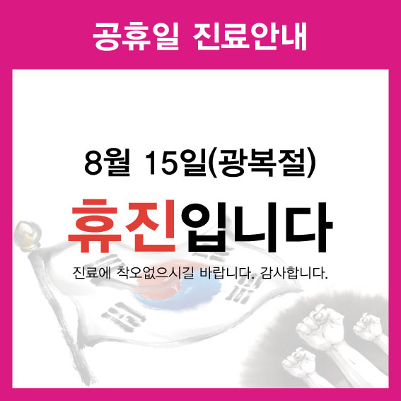 8월 15일 광복절은 휴진입니다.