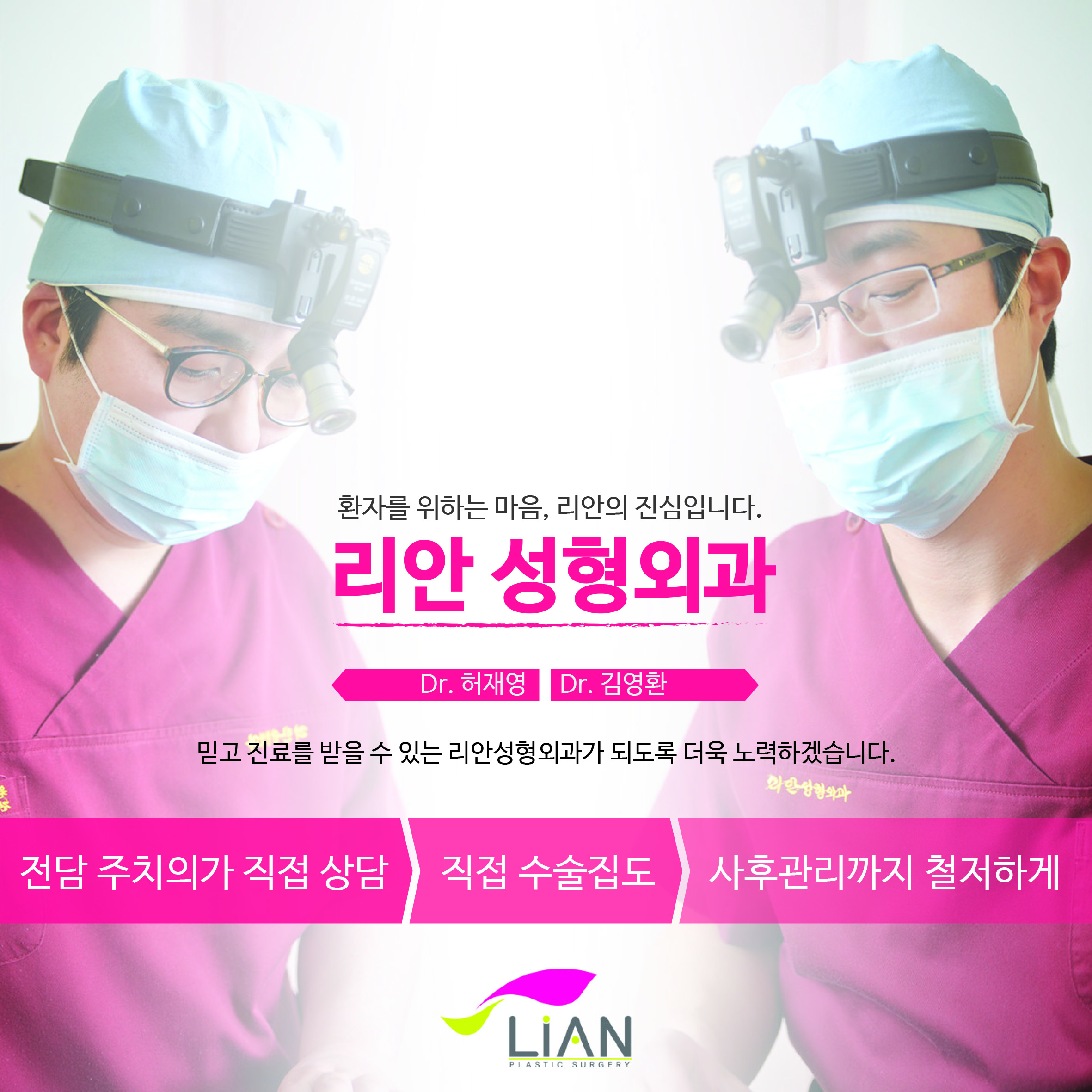 저희 리안성형외과에서는 대리수술, 쉐도우 닥터 절대 없습니다.