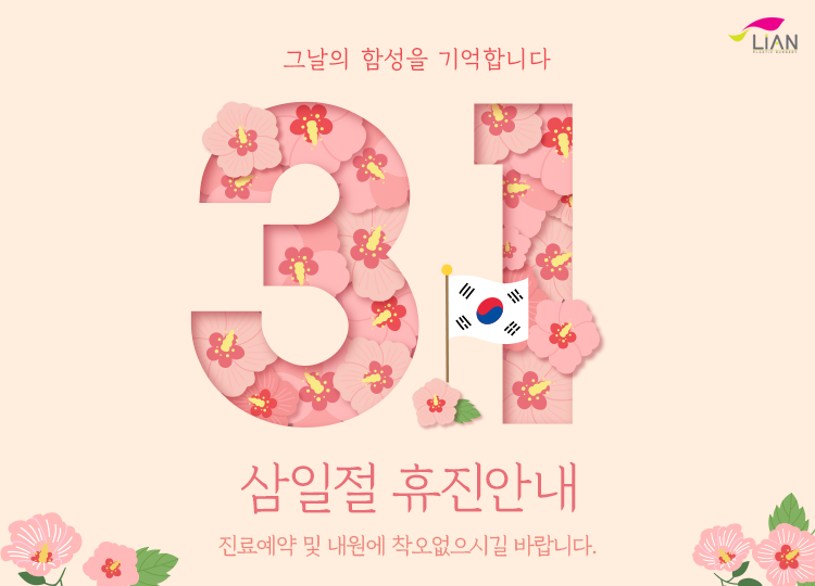 리안성형외과 2019 삼일절 휴진 안내 입니다.